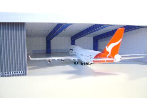 model is designed to hold a single Boeing 747, Boeing 777 or Airbus