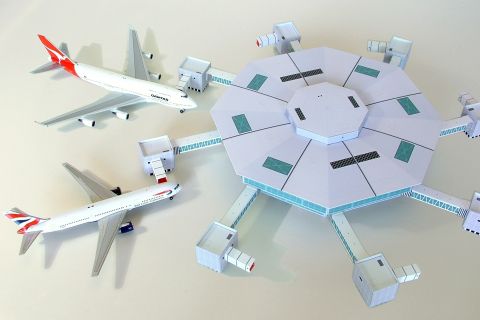 own or as a satellite of a larger terminal. Its shape allows aircraft